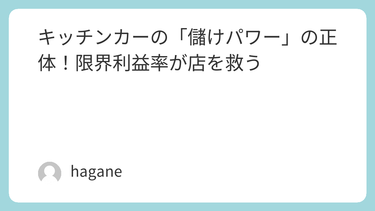 「変動費って、具体的にどこを削(けず)ればいいの?」 「限界利益率を上げる、かんたんなテクニックが知りたい」 「儲けパワー」を上げるための具体的なヒントを、セミナー資料から抜粋してまとめた【儲かるキッチンカー開業 限定ガイドブック】を今だけ無料でプレゼント中です。