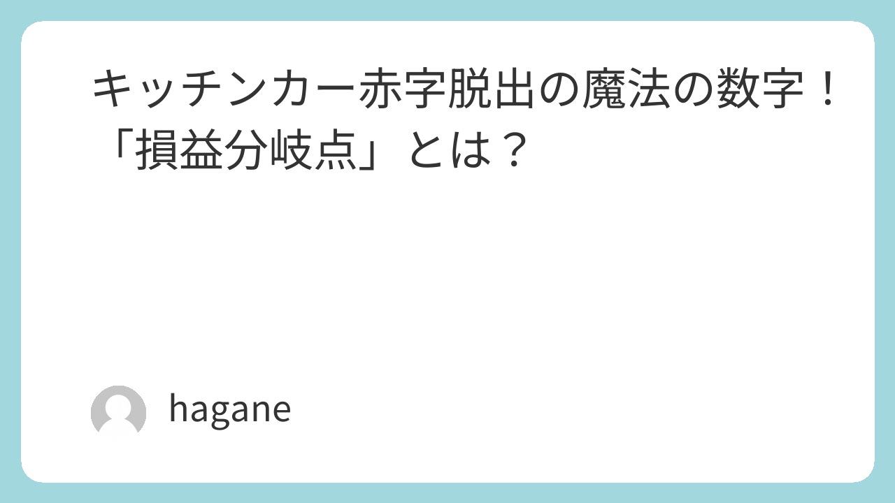 この数字を知らないでキッチンカーを経営するのは、コンパスを持たずに、真っ暗な森を歩くようなもの。 この記事では、あなたのお店をぜったいにつぶさないための「最強のコンパス」である、「損益分岐点」について解説します。