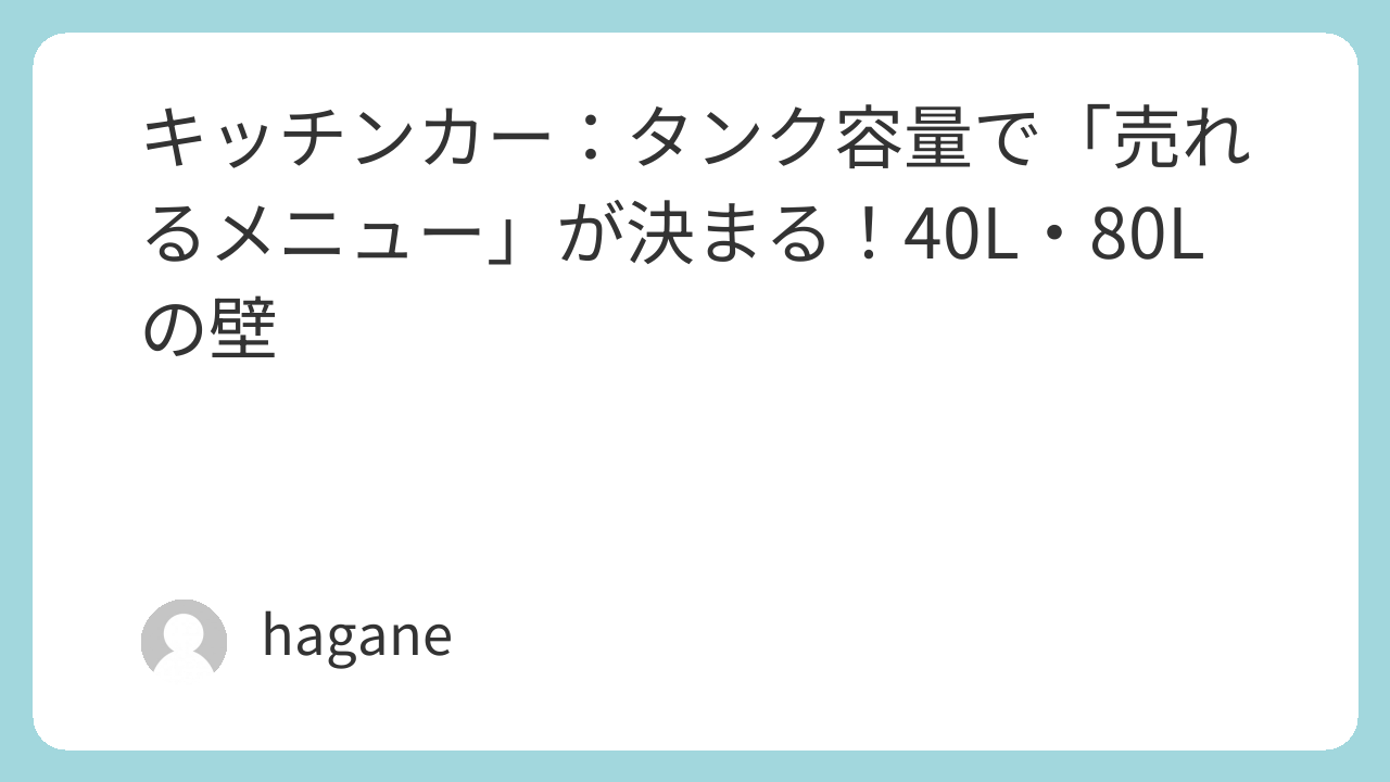 「40L」の車を作ってから、「やっぱりクレープがやりたい」と言っても、もう遅いのです。 「タンクの容量」が、あなたの「メニュー」と「儲け」の「未来」を、すべて決めてしまうのです。